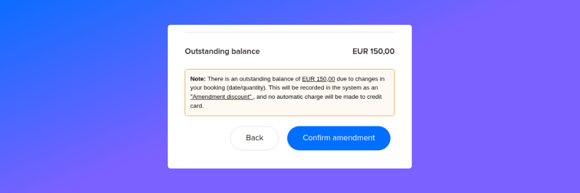 Amendment Discount" for Online/Credit Card Payments: For bookings originally paid via an online or credit card, any outstanding balance from an adjustment will now be applied as an Amendment discount. This allows you to proceed with the booking change without needing a new payment, while also providing a clear record of the adjustment.